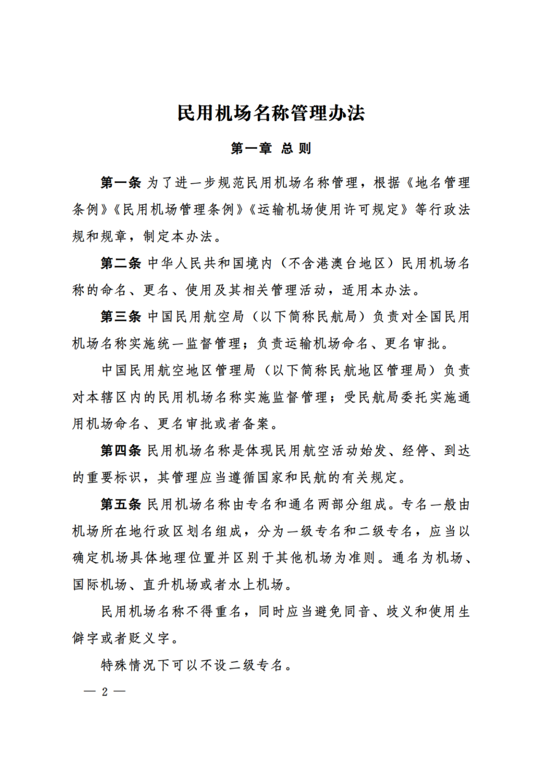 以下为《民用机场名称管理办法》全文
