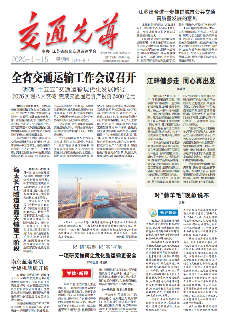 01-28苏交学办[2026] 13号 江苏省综合交通运输学会关于发布《千米级公铁两用悬索桥运维管理规程》等7项团体标准的公告
