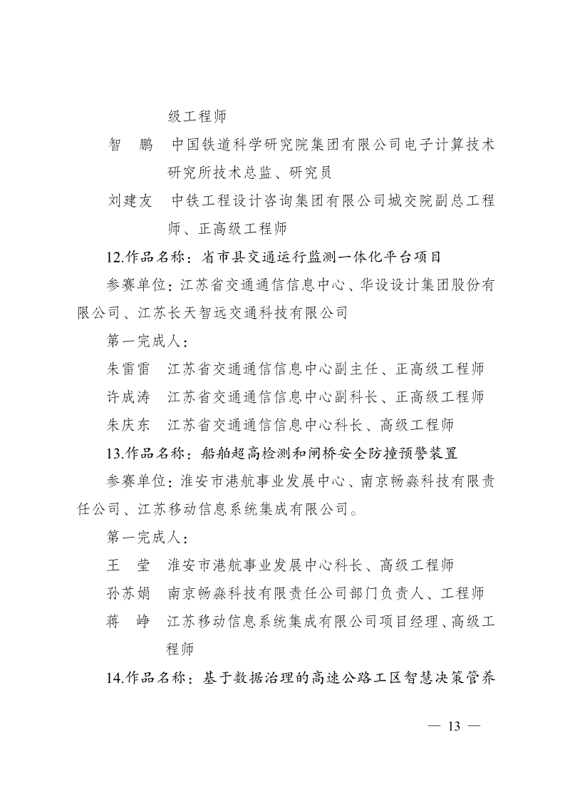 关于第29届智能交通世界大会创新大赛暨第一届“姑苏杯”长三角智能交通创新技术应用大赛江苏赛区获奖作品和个人的通报.pdf